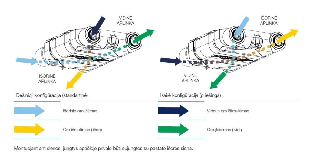 Oro įleidimo angos padėtis iš išorės, už filtro. Įrenginio elektroninė sistema automatiškai aptinka pašildymo elementą ir prireikus jį įjungia. Jis jungiamas, kai lauko temperatūra nukrinta žemiau -3°C.