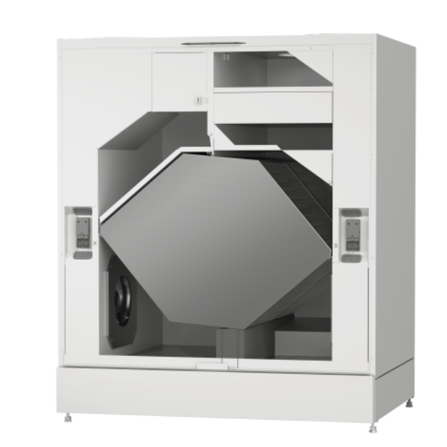 Ventiliatoriaus specifinis energijos suvartojimas yra tik 0,7 kWh/m³/s – tai reiškia, kad oras keičiamas labai efektyviai. Be to, įrenginys pasižymi aukštu šilumos grąžinimo efektyvumu – šiluma iš ištraukiamo oro dar geriau perduodama tiekiamam orui. Tai padeda sumažinti energijos sąnaudas ir taupyti pagrindinio šildymo išlaidas.