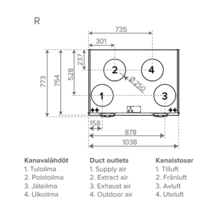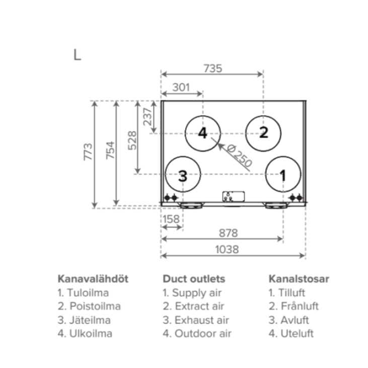 - Maks. tiekiamo oro srautas pagal EcoDesign 825 m³/h