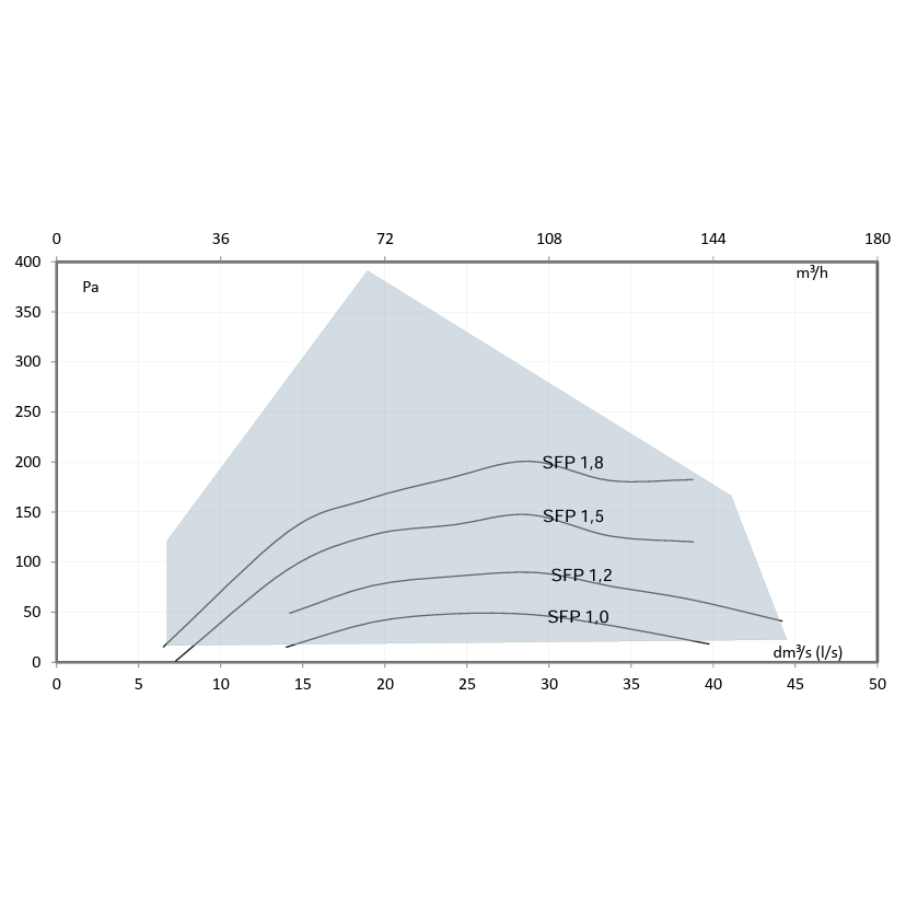 • Specifinė ventiliatoriaus galia (SFP) 1,008 kW/(m³/s)